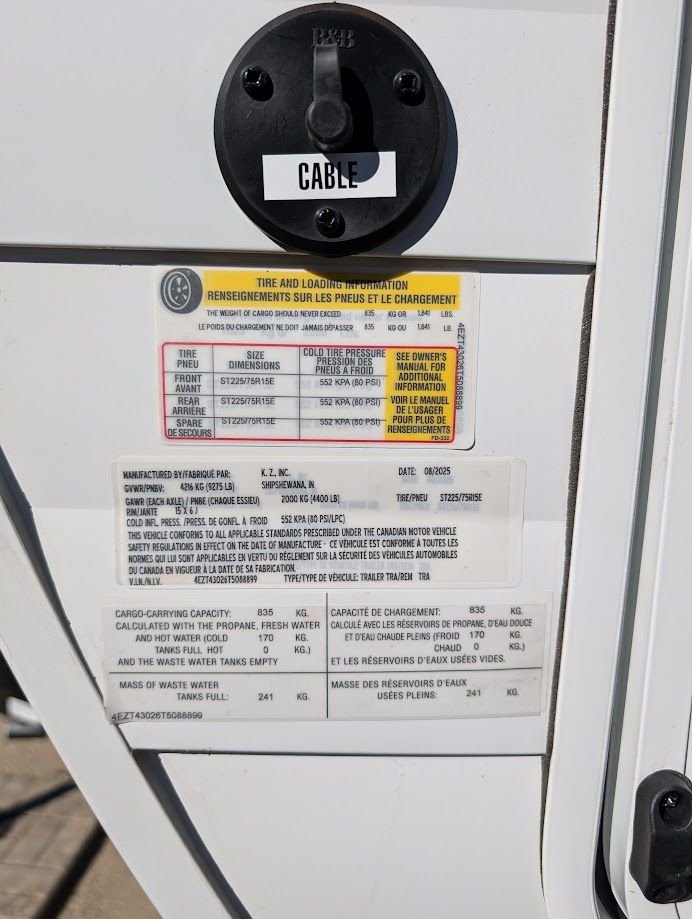 UVW (Unloaded Vehicle Weight)* 6,990 Dry Hitch Weight* 750 Dry Axle Weight* 6,240 CCC (Cargo Carrying Capacity) 2,285 GVWR 9,275 Interior Height 78" Exterior Height (with A/C) 11' 2" Exterior Width 96" Exterior Length** 33' 11" Refrigerator (Cubic Feet) 10 Water Heater Cap. (On-Demand Tankless) *** Fresh Water Cap. (Gal.) 45 Black Water Cap. (Gal.) 32 Gray Water Cap. (Gal.) 32 LP Gas Cap. (Lbs.) 40 Furnace BTUs (1,000s) 30 Tire Size 15" Awning 20' Standards and Options